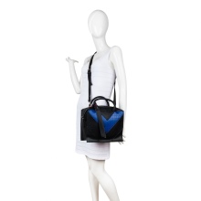 In addition, semicircular lines of lightning, a patchwork technique in the form of square fragments, a logo extruded on the leather of a bag, and leather strips decorated in the form of a crossing lacing are a decorative technique.
