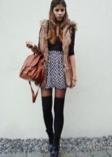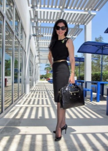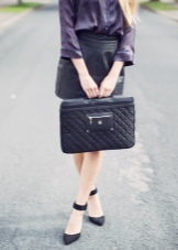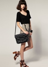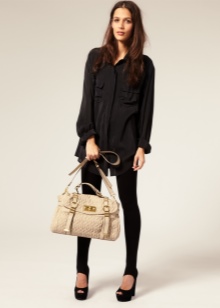- A large black bag will look spectacular with a beige or white shirt and caramel leather skirt. With a similar ensemble, bright pointed-nosed boats or shoes with a rounded toe with a steady heel will go well.