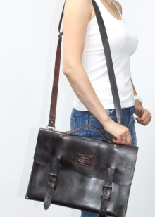 - Minimum capacity have portfolios for documents. The free space in such bags allows you to put inside only important papers and a pair of ballpoint pens. They have a flat structure that allows you to accurately transfer documents without crushing them. Most recently, these accessories were made exclusively for men, but today many brands produce women's briefcases for documents. They are equipped with short and elongated straps, so they can be worn both in the hand and on the shoulder.