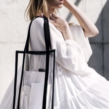 Interest in transparent bags first appeared only a couple of years ago. At first it was fashionable beach bags, then clutches, and finally, models of medium and large sizes. The advantage of such handbags is that they are extremely resistant to moisture, so even in heavy rain they are not in danger. In addition, external damage is less noticeable on the surface - scratches, abrasions, roughness. And care for such models is minimal - in case of contamination, the bag can simply be rinsed in water.