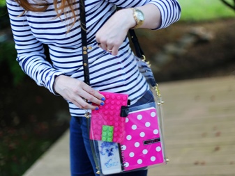 The purchase of different color covers, where you can put cosmetics, a smartphone or glasses, is an interesting solution for girls who love variety. In addition to such simple actions, the bag can additionally be decorated with various trinkets, feathers, rhinestones and rags of fabric.