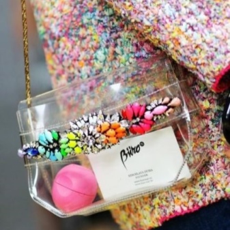 Today, the assortment of transparent handbags is so large that choosing a model to taste is not difficult. Large-format products, as well as stylish backpacks, are well suited for a beach holiday or for a walk around the city. Handbags, bags, look very good, especially in bright, saturated colors.