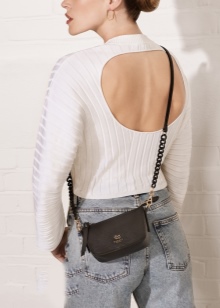 Setchel has a comfortable shape, has a stable bottom and resembles a briefcase. Such models are usually fastened in front on wide belts with metal buckles. The brand offers options with a double wearing system: in such models, in addition to one short handle, there is almost always a long wide strap for wearing over the shoulder.