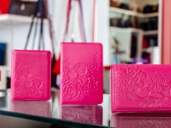 These sets are made of leather in different colors. There are more affordable sets of accessories in eco-leather. They are complemented by spectacular embossing under the skin of reptiles.