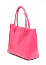 - Genuine leather has always been and remains the most popular raw material. She has not only a beautiful appearance, but also the highest quality. If you replenish your wardrobe with a pink handbag from this material, then it will serve you as long as possible and will not lose its presentation even after several seasons. The skin can be matte or patent. The second option looks very bold and catchy, especially if the bag is made in a rich shade of pink.