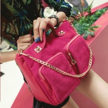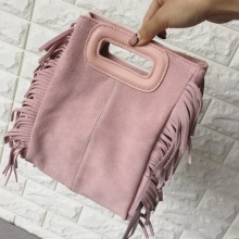 - Another common raw material is suede. Many fashionistas love her for their velvet texture and delicate appearance. A suede handbag can soften the look and make it truly feminine. But with such material you need to be as careful as possible. Try to protect your handbag from moisture, dust and dirt. Water can deform the accessory, and removing dirty stains from a fleecy surface is not so easy and simple.
