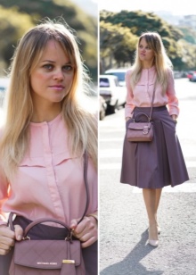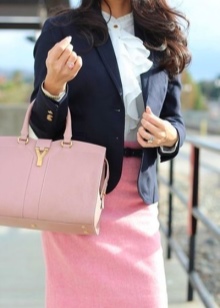 - To create a business-like and austere look, you can choose a pale pink bag with a geometric shape, a neutral color pencil skirt and a classic shirt. Shoes with pastel colors or round-nosed shoes of classic colors can be worn in this kit.
