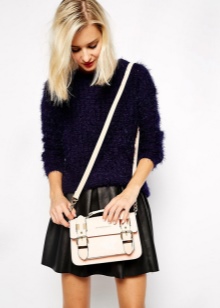 Mini bags are very fashionable this season. They are also called pouches. They are made from a variety of materials, from soft velvet to thick leather. Such instances do not have zippers or rivets. They close and open by tightening or dissolving the string, passed through the holes on the top.