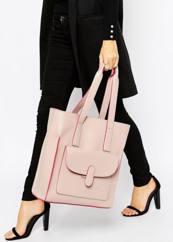 Another popular model called the toot has a large size. Such a bag can be taken with you not only for everyday exits, but also for going to work in the office. They look solid in a calm light pink color.