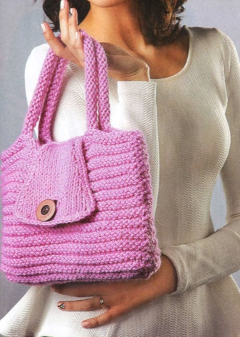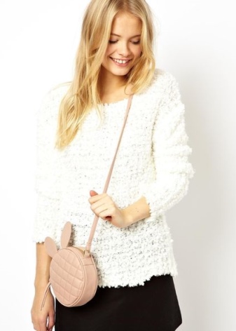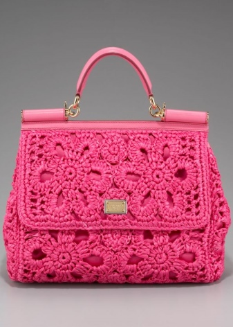 The trend of recent seasons is knitwear and accessories. Playful bags of pink yarn look very fresh and interesting. With the help of such a cute little thing you can revive the image and make it more airy.