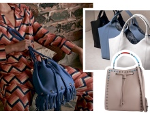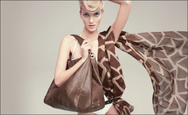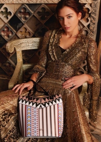 Tosca Blu designers love the color block technique. Successful combinations are pink and black, beige and emerald, brown, beige and mustard. Such accessories look original, emphasizing the extravagant taste of the owner.