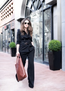 Laconic models of tots of basic colors will fit into a business image, consisting of both a strict three-piece suit and a more affordable set of a jacket and trousers. Pencil skirts, fitted dresses, and from shoes - classic boats, are also suitable.