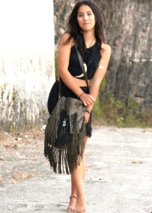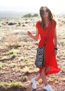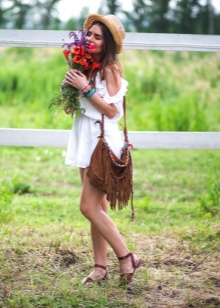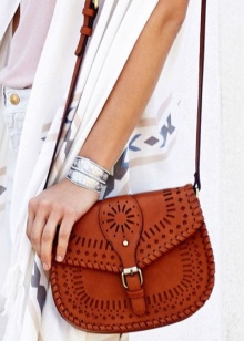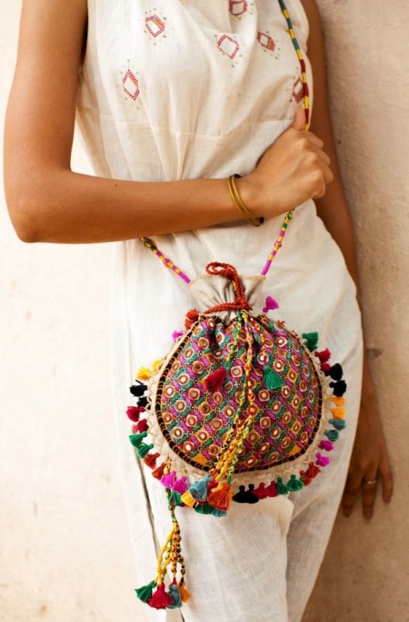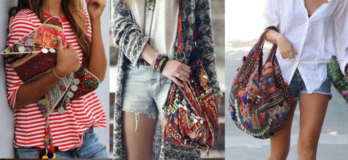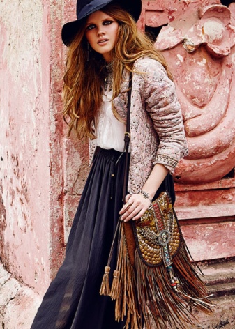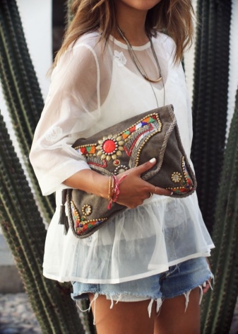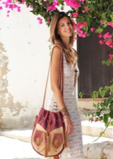 Bright and conspicuous Boho-style bags can decorate many women's looks. Let us consider in detail several beautiful ensembles in which fashion accessories are present:
