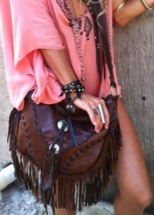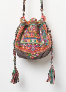 - A special and privileged category includes handbags in the style of boho-chic. They have a very effective external performance, which is suitable only for a bold, confident and self-sufficient young lady. Such products can be decorated with the most intricate and contrasting embroideries, long fringe, tassels and even perforation. Not every lady takes courage to enrich her image with such an interesting thing. But in a correctly selected kit, a boho-chic bag will look just brilliant!