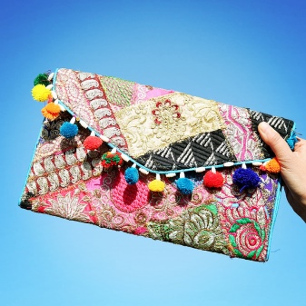 - Pouches in this style are very popular today. These models are also called bags, because they look very similar to small bags with ties at the top. Women's pouches in the direction of Boho are decorated with rich and vibrant colors, geometric images or ethnic compositions.