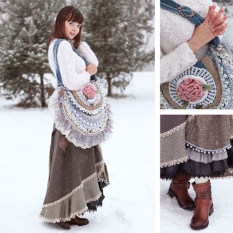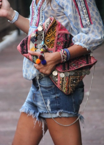 Accessories are complemented by absolutely any decorative details. Here you can give vent to imagination, as there are no restrictions! This is a huge plus of the popular style. Ladies can decorate their favorite handbag with different embroideries, appliques, beads, fringe or voluminous elements.