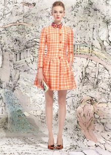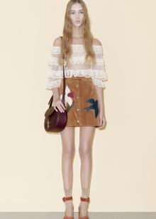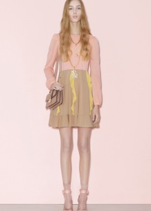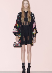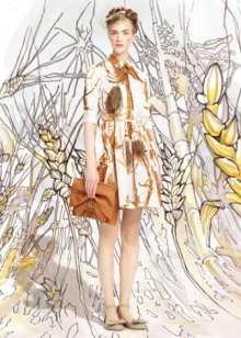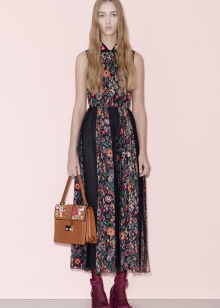 Often the design uses a duet with an unusual texture of the material and gold trim, peculiar ruffles, frills, wide belts with ornaments, beads and sparkling brooches, consisting of crystals, rhinestones.