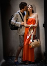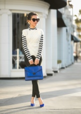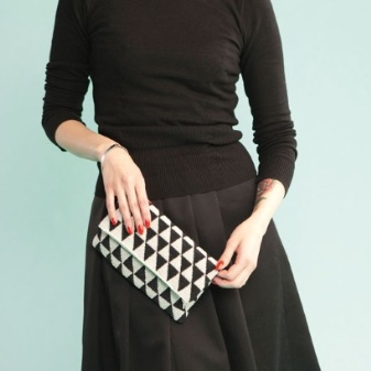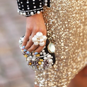 Evening models need luxurious and vibrant outfits. So that the bag fits harmoniously into the style, do not forget that its shade should be repeated in the elements of the wardrobe, shoes, accessories or jewelry.