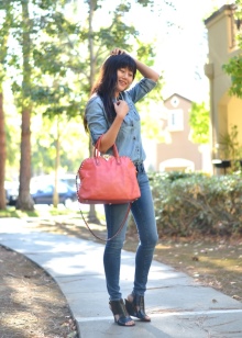 Models for shopping go well with skirts, tight trousers, blouses, tops, tunics, sweaters, short cotton jackets, dresses. If a girl likes jeans - please! Shopping bags do not require certain and strict rules.Their main task is spaciousness and convenience.