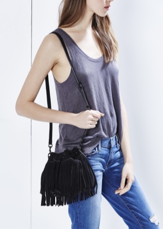 - Bag-bag - a kind of alternative to backpacks, only a more feminine model. Externally, this is a square-shaped product with a stable flat bottom, which has a handle of a convenient length. The difference between the style is the method of fastening: instead of the zipper, the bag is closed with a cord decorated with different stops and trim.