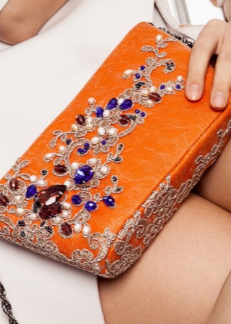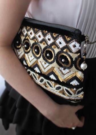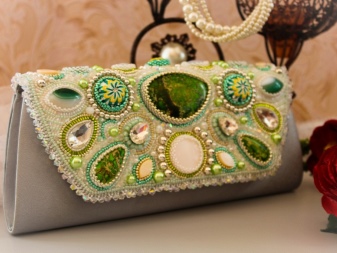 If embroidery decorates an evening clutch or an elegant handbag, then it is best to use plain or transparent beads. So the ornament will look more elegant.