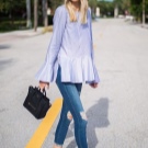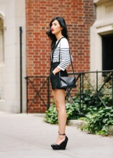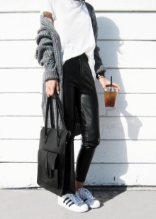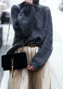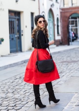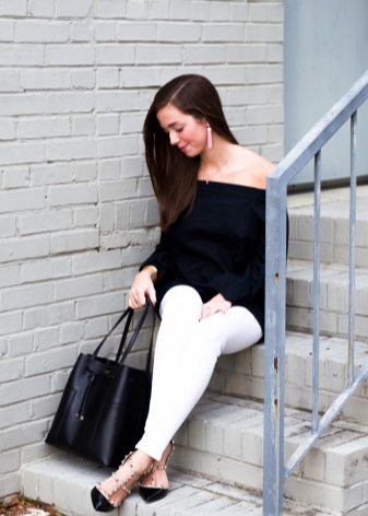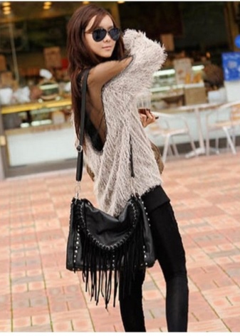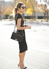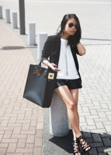 - A fashion accessory will easily fit into feminine ensembles. You can choose a skirt of medium or short length and complement it with a sexy topic, airy blouse or a light shirt. You can wear high heel shoes or wedge sandals on your feet. In such a youth kit, a black bag made of patent or matte leather with metal inserts will harmoniously look.