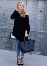 - Every fashionista in the arsenal should have a large shopping bag. It is designed for shopping. Black models of such accessories look concise and do not catch the eye of passers-by.