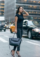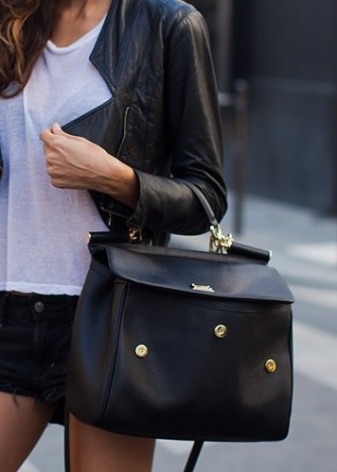 Universal women's accessories look very impressive with many women's things. They rarely get out of the general ensemble, harmoniously fitting into it. Let's take a closer look at examples of fashion kits complemented by black handbags.