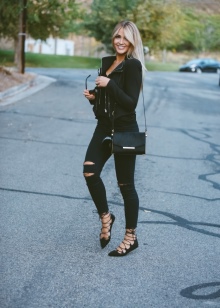 With black color, both contrasting and bright, and pastel colors in clothes will harmoniously look. It is not recommended to create ensembles in which all items of clothing and accessories are painted black, otherwise you will look too dull and a bit strange.
