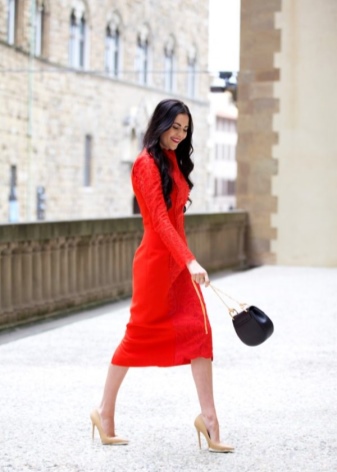 - Women's dresses look harmonious with black bags. Contrasting tandems emphasize the sexuality of a confident lady. For example, a spectacular combination of a red dress and a dark lacquered handbag or clutch will surely attract the attention of others.