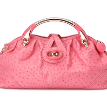 - A bag made of ostrich leather looks very peculiar - traces of feathers are very noticeable on it, in connection with which the surface is covered with small uniform pimples. Perhaps this option is not for everybody, however, it certainly will not go unnoticed by others.