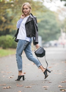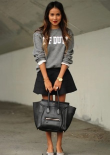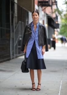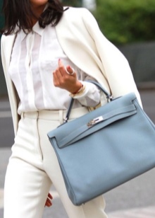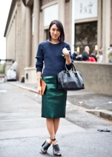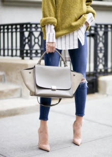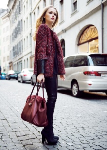 In a business style, a leather bag looks good in combination with leather accessories or inserts on clothes. A leather skirt or belt complements the bow well, the main thing here is not to overdo it so that there is not too much skin.
