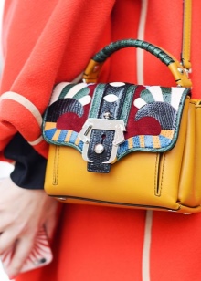 Great importance is attached to the decorative decoration of the accessory. Handbags with applications made of a material that differs (at least in color) from the base material were widely used - depending on the image, such a bag can be perceived as teenage, or quite adult. A combination bag made of leather with inserts of another material, for example, with wood or with textiles, also looks very trendy.