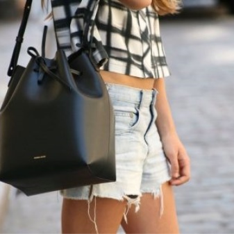 - Bag-bag is relatively rare, but immediately attracts attention. Usually these are relatively small accessories, visually really resembling a bag pulled together by a strap on top - so that the contents do not fall out. You won’t put much in such a bag, but it’s definitely suitable as a cosmetic bag.