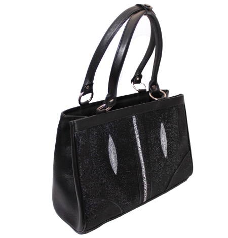 - The stingray skin looks stylish and unusual - the scales are also visible there, but they are very small and thick, there are practically no gaps between them, which is why black or dark gray bags made of this material seem to be covered with tiny drops of water.
