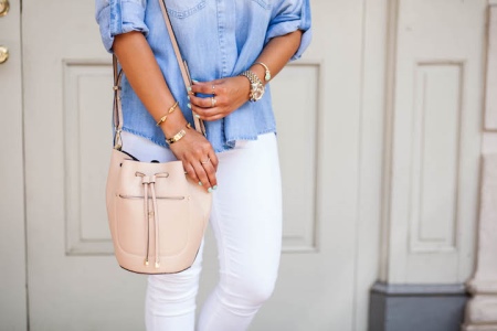 To create a calm and romantic ensemble, it is recommended to refer to instances of pastel and neutral colors. It can be a sack of pale pink, light purple, coral and sky. These accessories will suit delicate outfits that you can put on for an evening walk or a romantic date.
