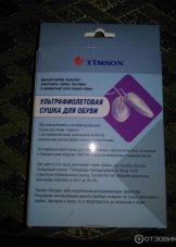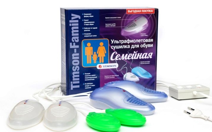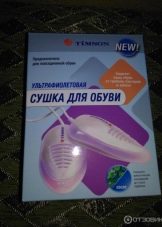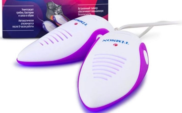 - Ultraviolet dryer Timson. Classical antifungal and antibacterial model. The device has a white body color, emits a glow during operation. The classic version of the dryer is energy efficient, suitable for use at night without supervision, as well as for processing open shoes.