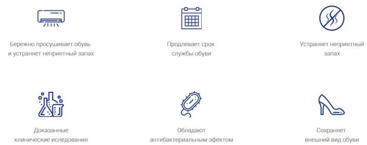 The low intensity of heating avoids overdrying shoes, deformation of the pads, but increases the duration of the drying time.