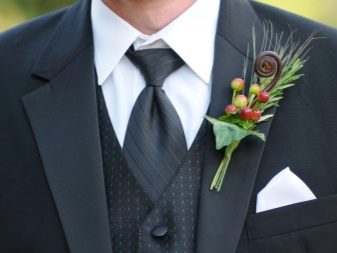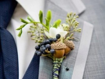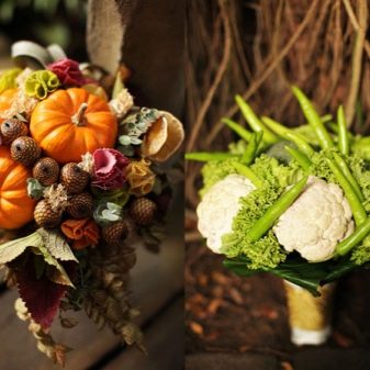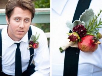 To complement the image of the bride, for the groom, you can choose the same vegetable boutonniere. But often in such a wonderful decoration they use not real vegetables, but artificial ones. But this is rather a matter of taste.