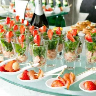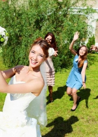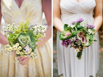 In order to please the guests and “infect” them with such an idea, one can hand each one such bouquets, which they will then put on the table or cut into a common dish. In the same way, at the end of the evening it will be possible to divide the bride’s bouquet among all the guests so that it would not be offensive to those who did not catch him.