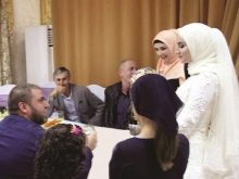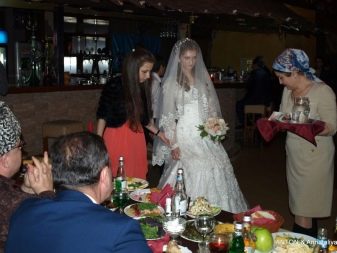 According to customs, relatives of a man should shower the girl with money and sweets, and then pour a mixture of honey with butter in a spoon and give them a drink first mother-in-law, and then the youngest. At this moment, shots are usually heard that are designed to scare away evil spirits. It can only be an air gun, since firearms are officially prohibited in Chechnya. Traditionally Chechen weddings are held in a restaurant, so the best man takes the girl from her husband’s house and leads to the place of the celebration, where, in accordance with traditions, a place is reserved for her in the corner.