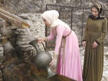This is a very important ceremony that completes the wedding ceremony. On the wedding day, a needle is pinned to the hem of the bride, in the evening of the same day she must bake a pie with this very needle inside. The young wife takes this treat with her, as well as a jug, and goes with friends and girlfriends to the nearest body of water. It is customary to throw a pie into the water and fire from a gun, after which the young one must draw water into the jug and take it to her new home.