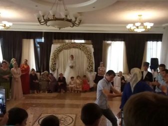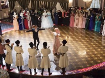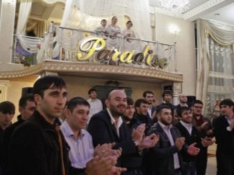 But the young spouse does not catch the eye of the wedding guests: he celebrates in a separate room with his closest friends. All other guests are located in a large hall. Usually the event is held by imal-tamala, who leads the process, he also announces the beginning of the dance. Usually the dance floor is divided into two zones: ladies dance in one part, and men in the other. Joint dances are not allowed here.