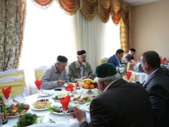 At the table, men also sit apart from women, while they are located in seniority. Little children have no space at all - they spend time near the table. The bride’s family usually does not take part in this event, so for them such a holiday is rather a sad event.