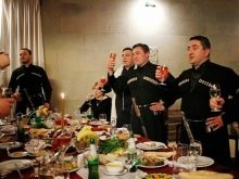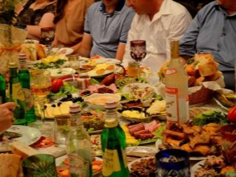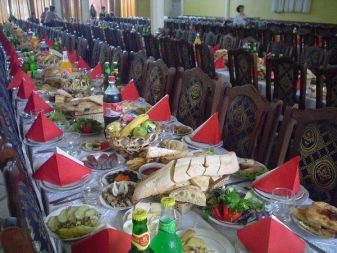 There is a large amount of alcohol on the tables. Georgians prefer wine or cognac of good aging, which was stored for such a case for many years.