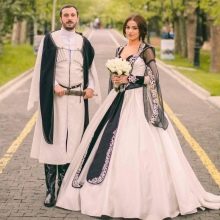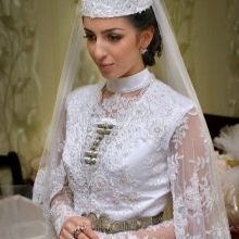 The bride’s outfit is bought by the groom. It consists of two components. A shirt with a collar - a symbol of purity and purity - is the bottom. Next is a gorgeous dress, white or black with wide cuts on the sleeves.