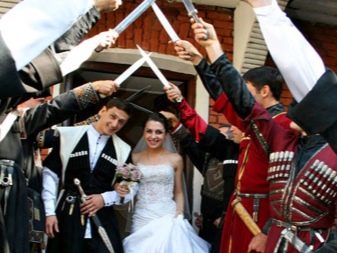 The most important is the wedding rite, which takes place in the church before the celebration, celebration. Having received the blessing, the newly made couple should pass under the arch, which was formed from the daggers by the comrades of the groom. The arch is a charm for a new family, which serves as their protection.