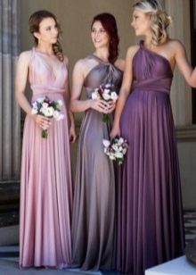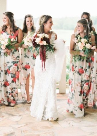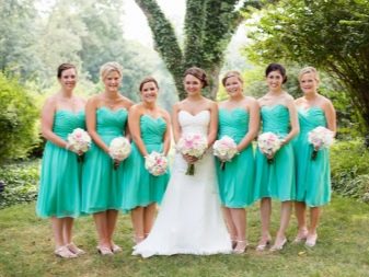 Such flocks of girls resemble bright butterflies and are a wedding decoration. In the photographs, they set off the bride in a snow-white dress, creating a stylish color frame with her outfits.