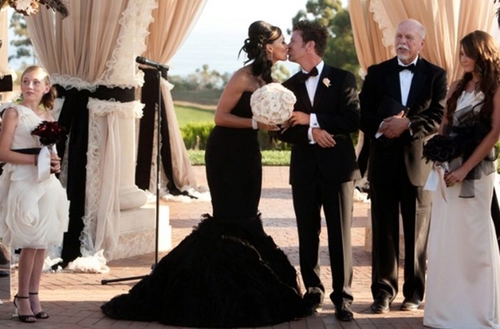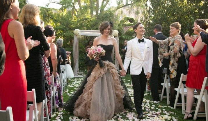 White on this day is the privilege of the bride, and black, according to tradition, is associated with completely different, gloomy ceremonies. However, in this case there can be exceptions if the bride prefers not a white color scheme for her outfit.