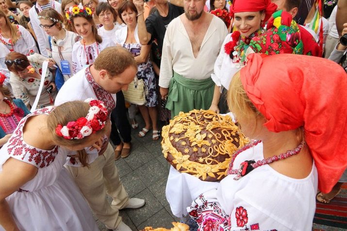 Currently, these traditions have not been lost. The happiness and wealth of the new family is determined by the splendor of the loaf. It is offered on a bench hammer, hand-embroidered, the mother and father of the newly-born spouse, treat the young. Today, there are many options for decorating a dish - these are edible flowers, swans, pigeons, rings. If the loaf is decorated with berries or hearts, it is believed that eternal love awaits the young. Flowers are a sign of purity of the bride. Birds embody the honesty and sincerity of the spouses. Spikelets symbolize family well-being.